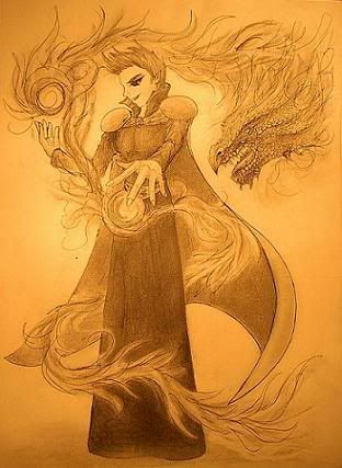 Equipment: Concealed within various pockets that double as Bags of Holding, inside robes enchanted to be as protective as platemail, are a few small necessities that every mage carries. Noticeably this includes certain mundane objects used in arcane practices, sacrificial knives, etc. Of more important stature are the two weapons he carries, his staff and his sword. The staff itself is usually kept in an extradimensional pocket, and contains many basic destructive and utility spells. Some would be familiar with it as a "Staff of the Magi". His sword, known as the Talos Blade or Talamune, is an elegant katana with a faintly glowing blade of red-orange metal...or at least, a metal-like substance. Those who have had the opportunity to actually examine the blade report that it seems to pulse, almost as if alive, and that its sharpness is otherworldly. Unlike traditional katanas, the blade of the Talamune is strong enough for parrying in a duel. The sword is traditionally used as a last-ditch weapon, or when magic would not prove expedient...or when the opponent is considered unworthy of a magical demise.
