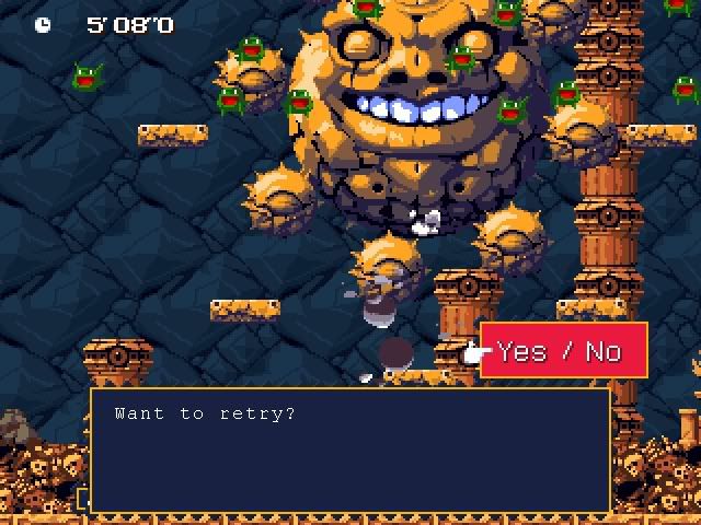 The first is minesweeper: http://img.photobucket.com/albums/v2...eeperdeath.jpg As you can see, there was no possible way of knowing between my two options aside from intuition... And my gut was telling me to pick the other one, but I didn't, and so I paid the price. The second is Cave Story: http://img.photobucket.com/albums/v2...yCloseCall.jpg Running Hell, that's a pretty good time to get, and I got killed by a falling skull. This is when Ballos is going into his final form, and he's not actually attacking me in any way yet, this is a transitory period. I'd used my life-pot already, but I had enough to take the 2 damage from the spikes, perch on his cheek and give him a missley death in like two seconds if I hadn't been killed by that skull. I would have gotten the special starting screen too. So, any frustrating gaming moments you have? (on or off record?) |