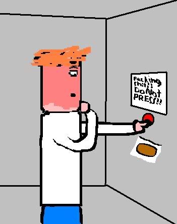 Leave and press the nearest big, shiny button. No matter what it does.