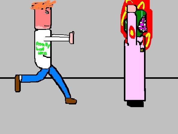 Tackle the porn star and steal his fire. Put it in your inventory.